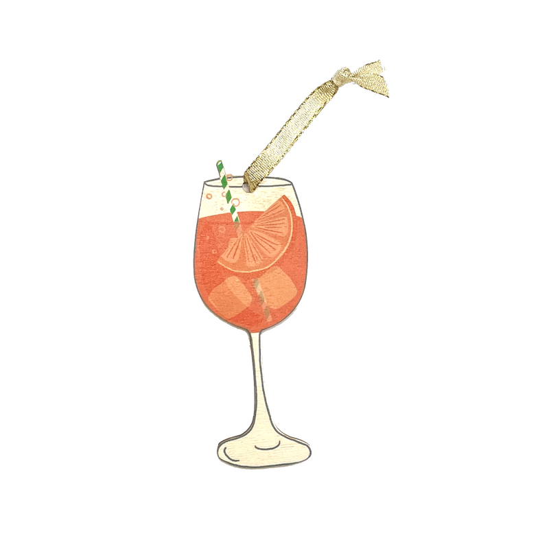 Aperol Spritz Christmas Decoration. A colourful, illustrated tree decoration, perfect for cocktail fans and home bar enthusiasts.